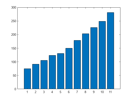 - Graphics: You can use MATLAB to visualize and explore data using various types of plots, such as line plots, bar plots, pie charts, histograms, scatter plots, etc. You can also customize your plots by adding titles, labels, legends, colors, etc. [A bar plot example in MATLAB]